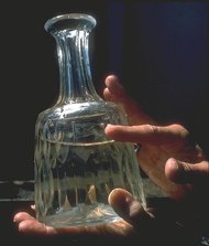 crystal decanter. Her index finger is pointing to the White Star Line logo. |