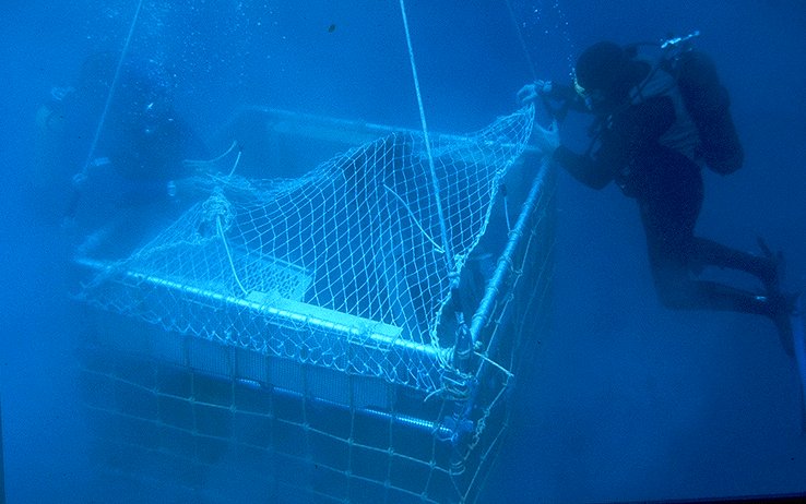 Divers placing netting over